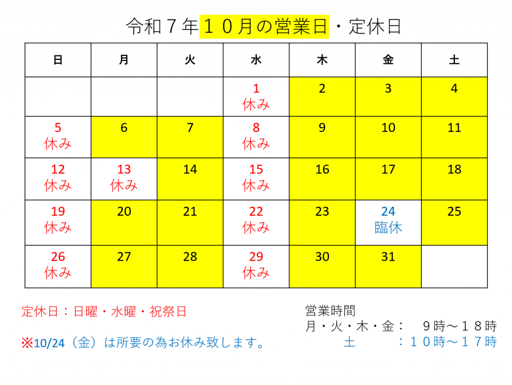 10月の営業について